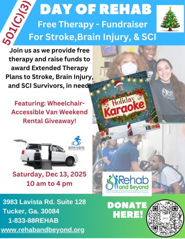 Rehab and Beyond Provides Free Therapy to underserved Stroke, Brain Injury, & Spinal Cord Injury Survivors, in the state of Georgia.