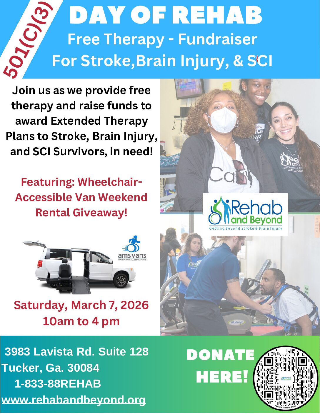 Rehab and Beyond Provides Free Therapy to underserved Stroke, Brain Injury, & Spinal Cord Injury Survivors, in the state of Georgia.
